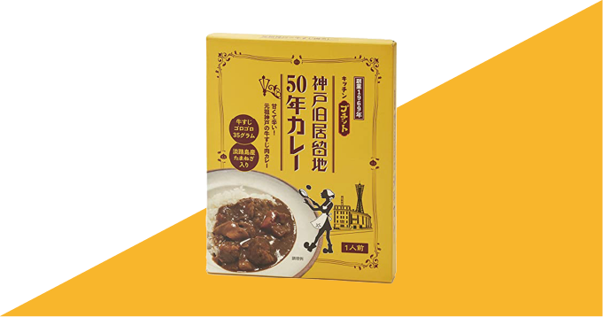 牛すじと野菜がゴロゴロ入ったどこか懐かしくレトロなレトルトカレー、神戸旧居留地50年カレー。