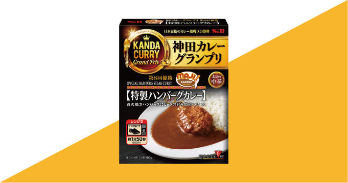 このカレーは第8回の神田カレーグランプリで優勝したMAJIカレーの特製ハンバーグカレーをレトルトにしたものです。